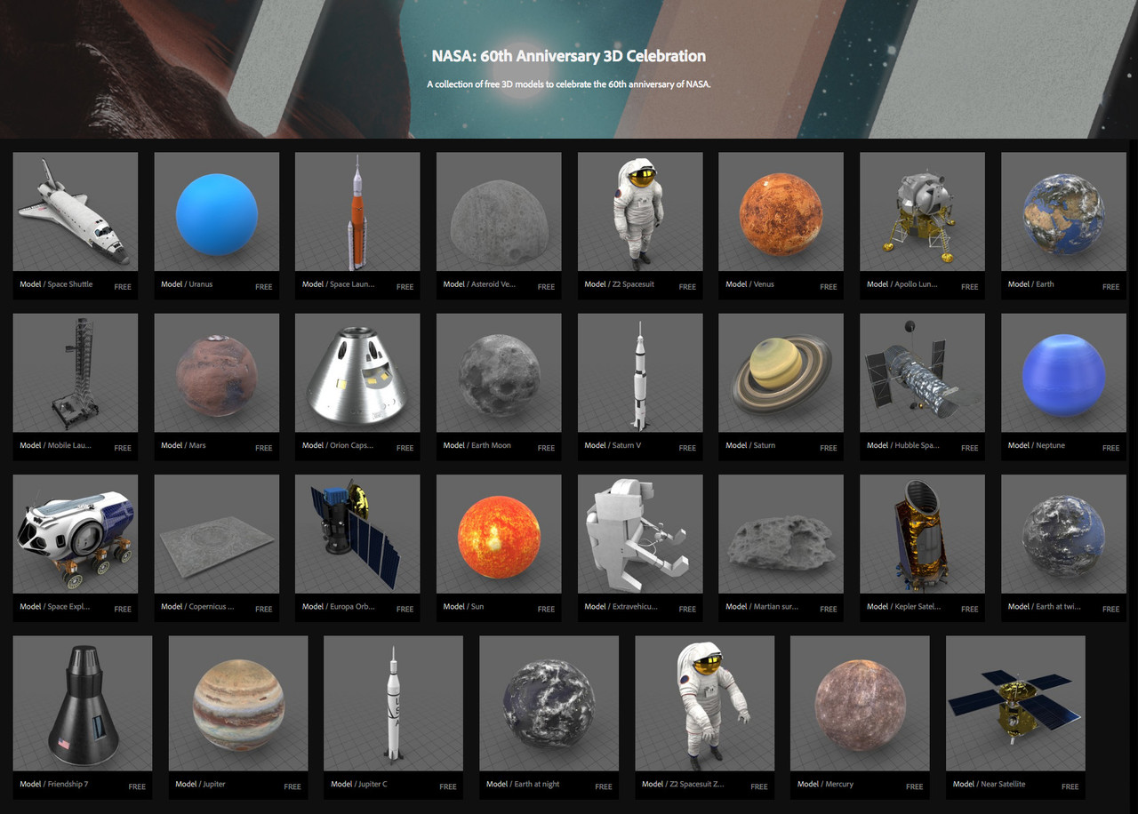 Over one thousand artists took up the challenge to imagine NASA missions from the past or future using Adobe Dimension.